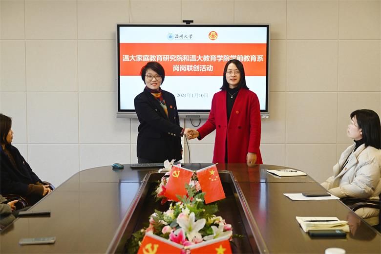 为加强家庭教育及学前教育领域的交流与合作,共同推动家庭教育和学前教育事业的发展。温大家庭教育研究院巾帼文明岗与温大教育学院学前教育系巾帼文明岗于2024年1月10日举行了一场深度的岗岗联创活动。作为浙江省内知名的家庭教育研究机构,温大家庭教育研究院巾帼文明岗一直以来致力于推动家庭教育的普及化、科学化和专业化。温大教育学院学前教育系巾帼文明港作为培养优秀学前教育人才的重要基地,为学前教育事业的发展做出了积极贡献。