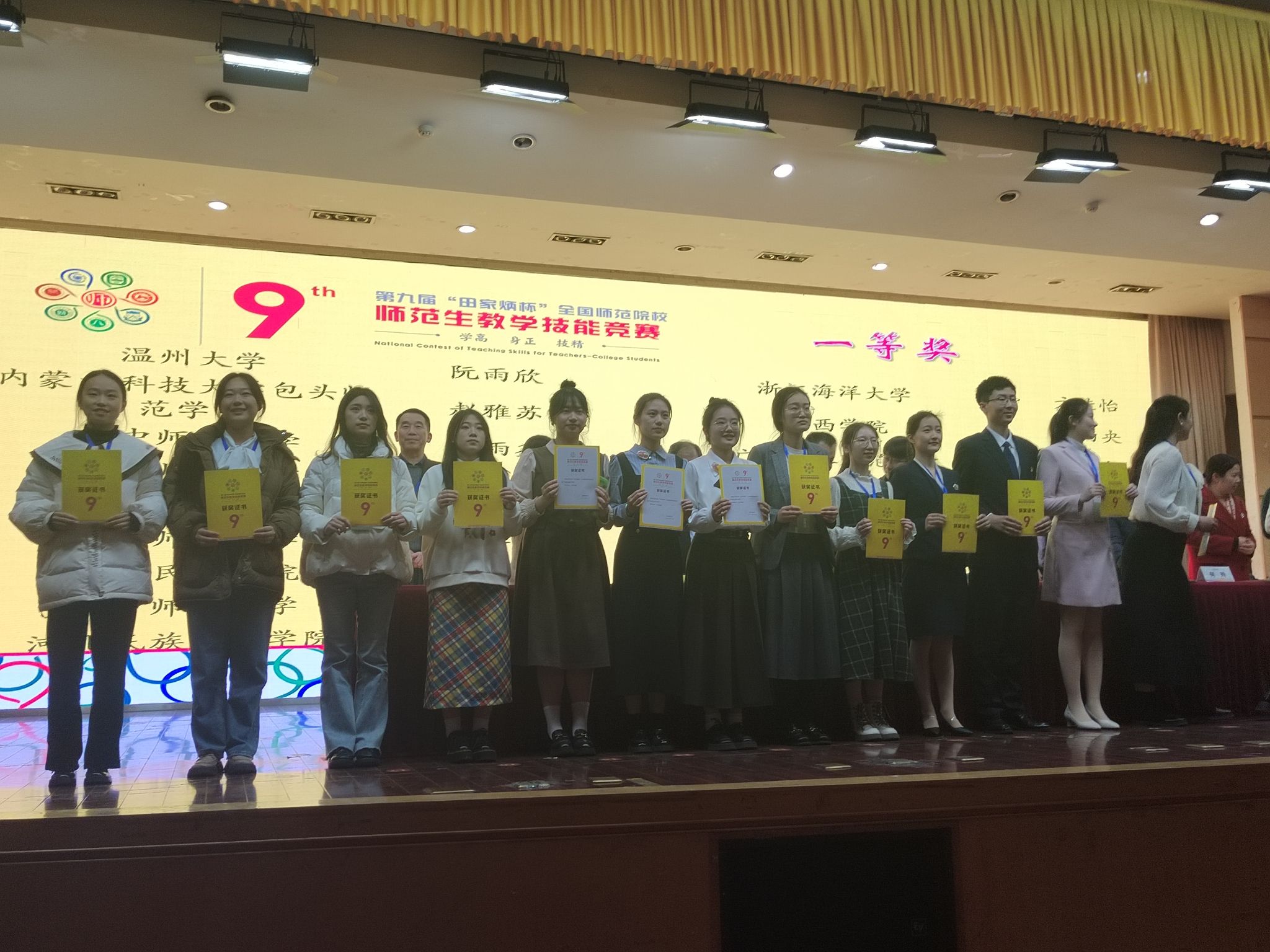 2023年12月29-31日,第九届“田家炳杯”全国师范院校师范生教学技能竞赛决赛在浙江师范大学举办。本次大赛全国共226所高校1611名选手参赛,51吃瓜 共有10名选手参赛,获一等奖4项、二等奖1项、三等奖5项,一等奖数全国排名第六。