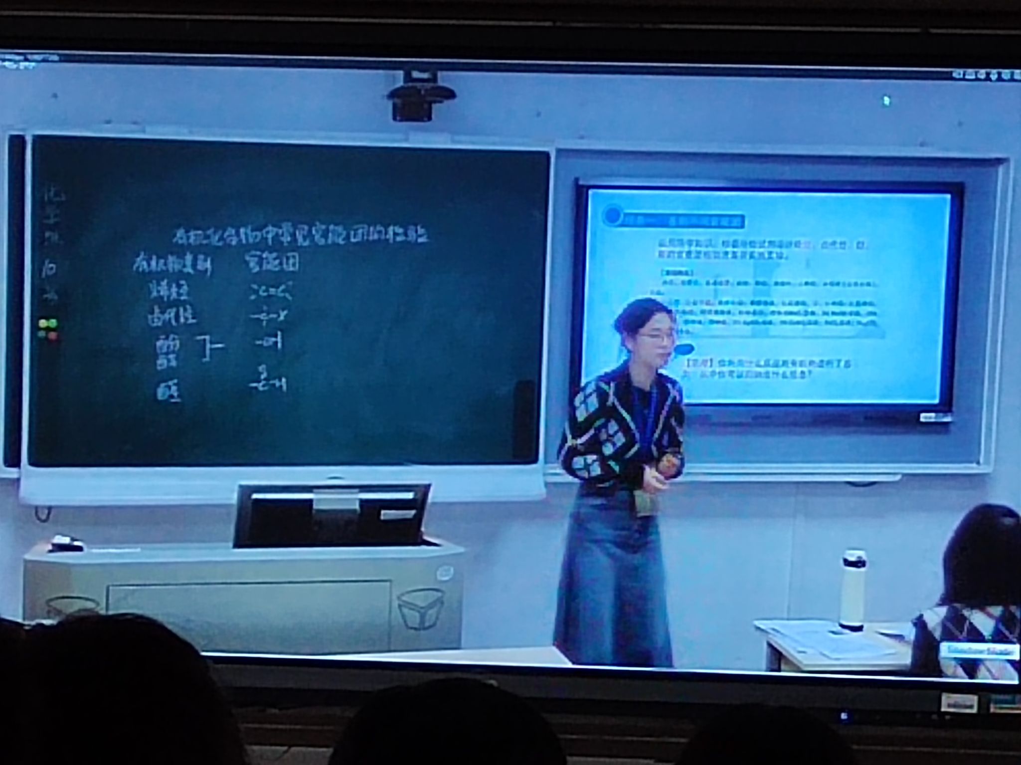 决赛现场,汉语言文学组臧航逸同学抽到的课题是《学习活动:词义的辨析与词语的使用》,区别于平时备赛所训练的课题,该题型较偏,难度较大,她随机应变,有机转化教学素材,灵活使用小组讨论法、自主探究法,轻松调度课堂,让学生在勾勒意象、命名画面与对比动词中体会“落木”所表现出的杜甫沉郁顿挫的语言风格,从而辨析“落木”的精深用法;化学组胡泱妮同学模拟上课题目是人教版高中化学选择性必修3第三章的实验活动2《有机化合物中常见官能团的检验》,她通过创设贴合生活的真实情境提出了启发性的问题——水果篮中为什么要放浸有高锰酸钾的硅藻土?以此引入教学并激发学生学习兴趣;历史组阮雨欣同学抽到了选择性必修2《经济与社会生活》的第5课《工业革命与工厂制度》,尽管时间短、任务重、教材内容不够熟悉,但她仍自信从容,以训练时打磨的框架为基础,快速准确地完成了ppt和教学设计,在授课过程中,她以狄更斯对工业时期的描述导入,营造认知冲突,以“学为中心”的理念设计学生活动,并通过问题链的形式构建学习支架,运用多样的教学方法帮助学生形成对工业时期全面、客观的历史认知,教学氛围热烈。