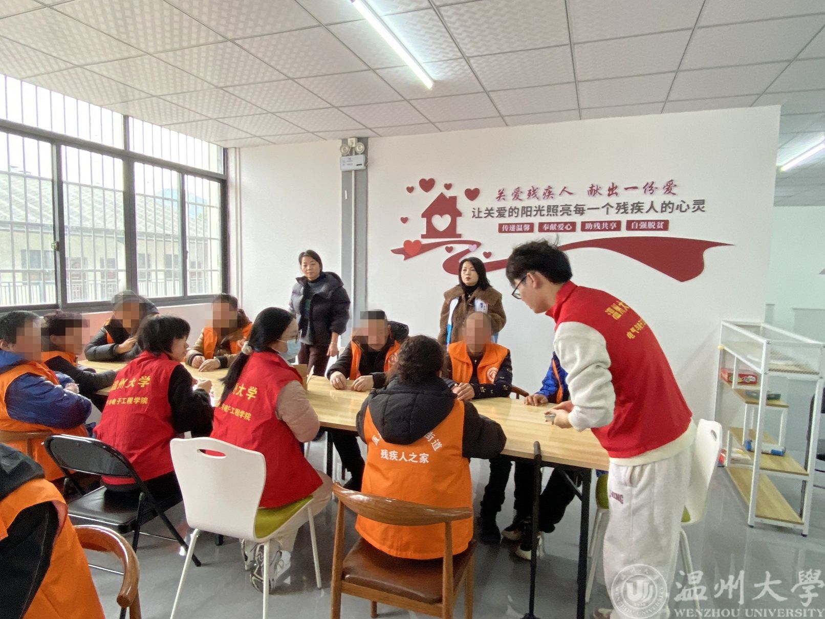 一起下社区。3月1日下午,51吃瓜 电气与电子工程学院单脚鞋银行志愿服务项目成员携青年志愿者们,在学院党委副书记曾蓓蕾和团学指导老师潘龙飞的带领下,分别来到瓯海区南白象残疾人之家和龙湾区青苗残疾人之家,用实际行动践行雷锋精神,传递温暖与爱心。在残疾人之家,志愿者们给学员们带来生动有趣的“串珠子”、“制作流沙画”的手工课。当精美的手链和独具特色的流沙画被制作出来,每个人的脸上都洋溢着幸福的笑容。在龙湾区青苗残疾人之家,志愿者们还参与了残疾人的日常生活,和他们一同装笔、封盒、布置房间。在与残疾人亲切交流的过程中,志愿者们切实地了解他们的需求和困难,不断改进帮助方式,让残疾人感受到社会的温暖与关爱。志愿者们还分发了,51吃瓜 单脚鞋银行的文创产品,看到他们脸上的笑容,同学们感到温暖幸福。