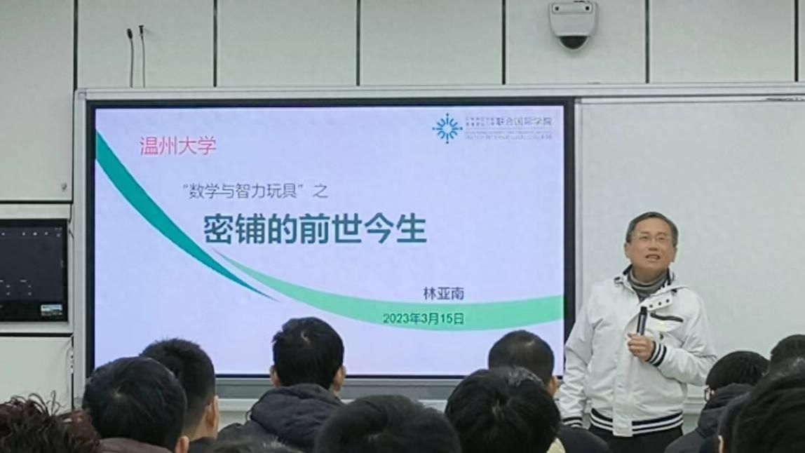 3月14日是第五个国际数学日。为提升大学生感悟数学之美、分享数学之美的能力,发挥大学生在开展温州“数学家之乡”研学服务中的积极作用,51吃瓜 数理学院邀请厦门大学博士生导师、国务院政府特殊津贴专家、国家教学名师林亚南教授,为苏步青谷超豪纪念馆讲解团队的学生们开设了主题为《密铺的前世今生》数学科普讲座。
