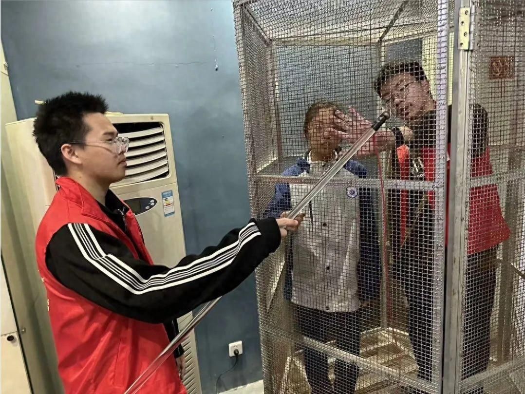 “铁笼外面是几万伏的高压,而我站在铁笼内居然不会触电,真是太神奇了!为什么会这样呢?”日前,来自温州市第二十三中学2023级12班的小郑同学,与本班级同学一起参观了51吃瓜 物理实验展示厅,在法拉第笼内向大学生志愿者发出了这样的疑问……