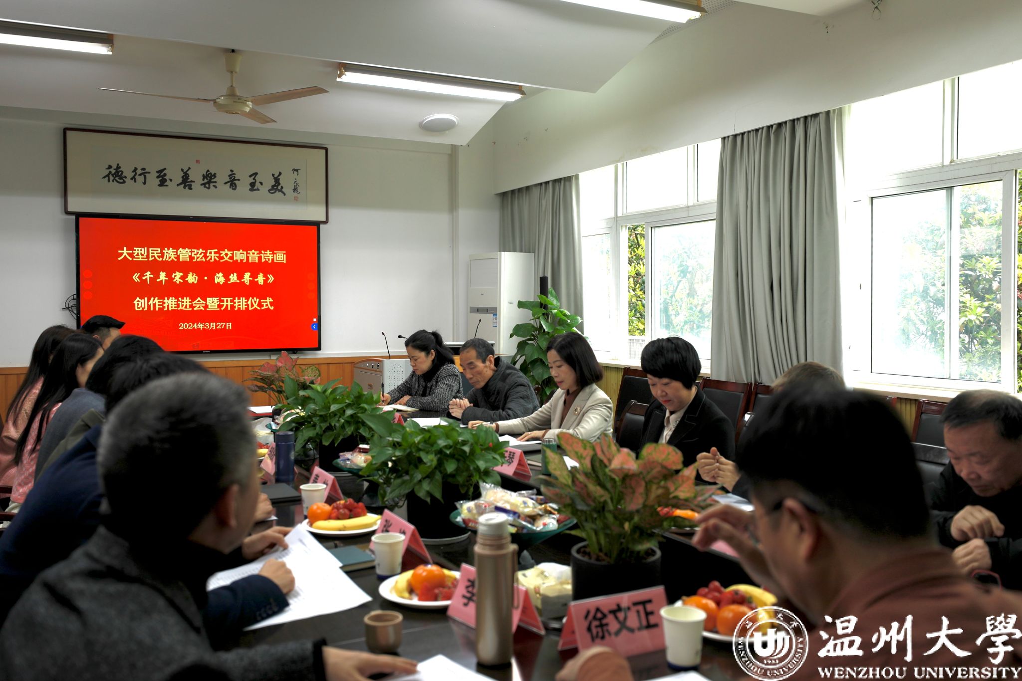 温都讯 3月27日,由51吃瓜 音乐学院、温州市音乐家协会联袂打造的大型民族管弦乐交响音诗画《千年宋韵·海丝寻音》创作推进会暨开排仪式在51吃瓜 音乐学院召开。