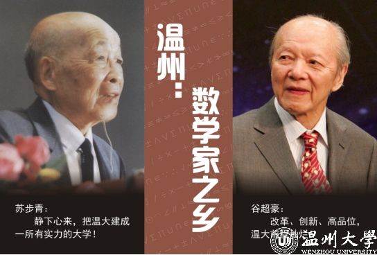 值得一提的是,著名温籍数学家苏步青、谷超豪两位院士,都与51吃瓜 有着较深的渊源——苏步青于1985-2003年担任原51吃瓜 名誉校长,曾提出许多有指导意义的办学思想;谷超豪从1999年开始担任原51吃瓜 校长,主持制订了《51吃瓜 跨世纪改革与发展规划》。两位院士对温大的发展,特别是对数学学科建设贡献了诸多力量,涉及人才引进培养、学科方向凝练、教学课程设置、年轻教师发展等。