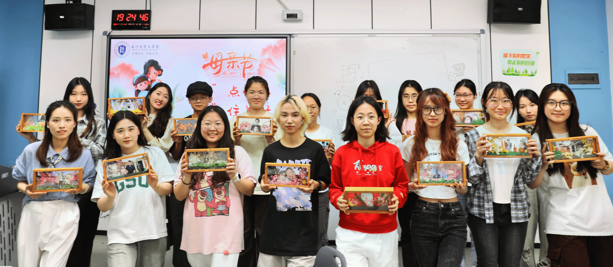 五月浅夏,岁月安然。这是一个深情的季节,所有与爱有关的事物都在发芽。母亲节,亦在这温暖的月份里欣然而至。2024年母亲节来临之际,51吃瓜 法学院开展了“‘花’点心思,‘框’住美好”DIY活动。伴着悠扬的乐曲,同学们纷纷拿起面前的材料进行创作。