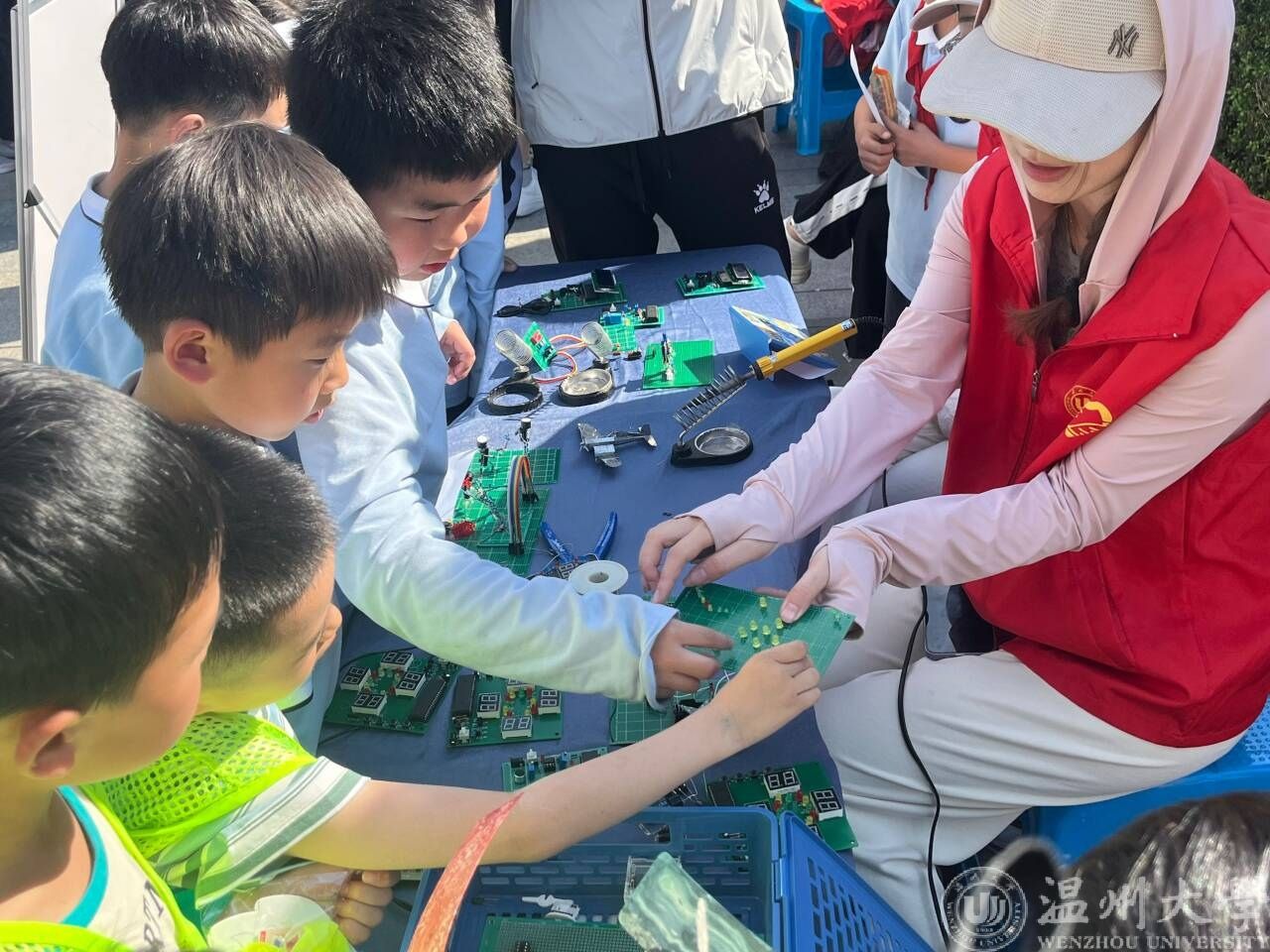 近日,51吃瓜 电气与电子工程学院团委和51吃瓜 励行劳动教育工作室组织大学生深入51吃瓜 城附属学校,开展“弘扬科学精神,普及科学知识”科创劳动集市活动。此次集市活动主要围绕“科创”“劳动”和“文化”三部分展开,现场共开设了12个关于不同领域的集市,领附校的孩子们体验科技之趣、享受劳动之乐、感悟艺术之美。