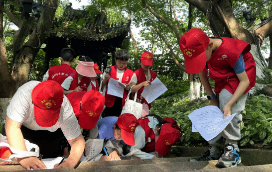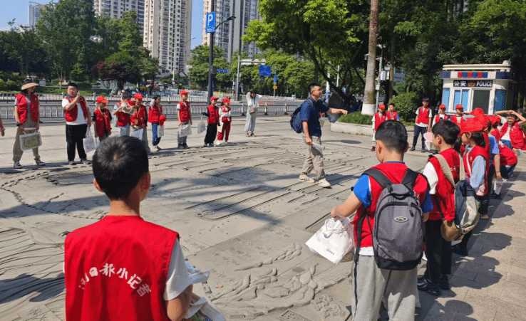 为了让小记者们更加了解温州的历史,梁一粟老师利用郭公山台阶上记录温州史的文字,设计了一个“拾级寻史”的游戏。随着小记者们的拾级而上,温州“前世今生”的这幅画卷次第展现在他们眼前。