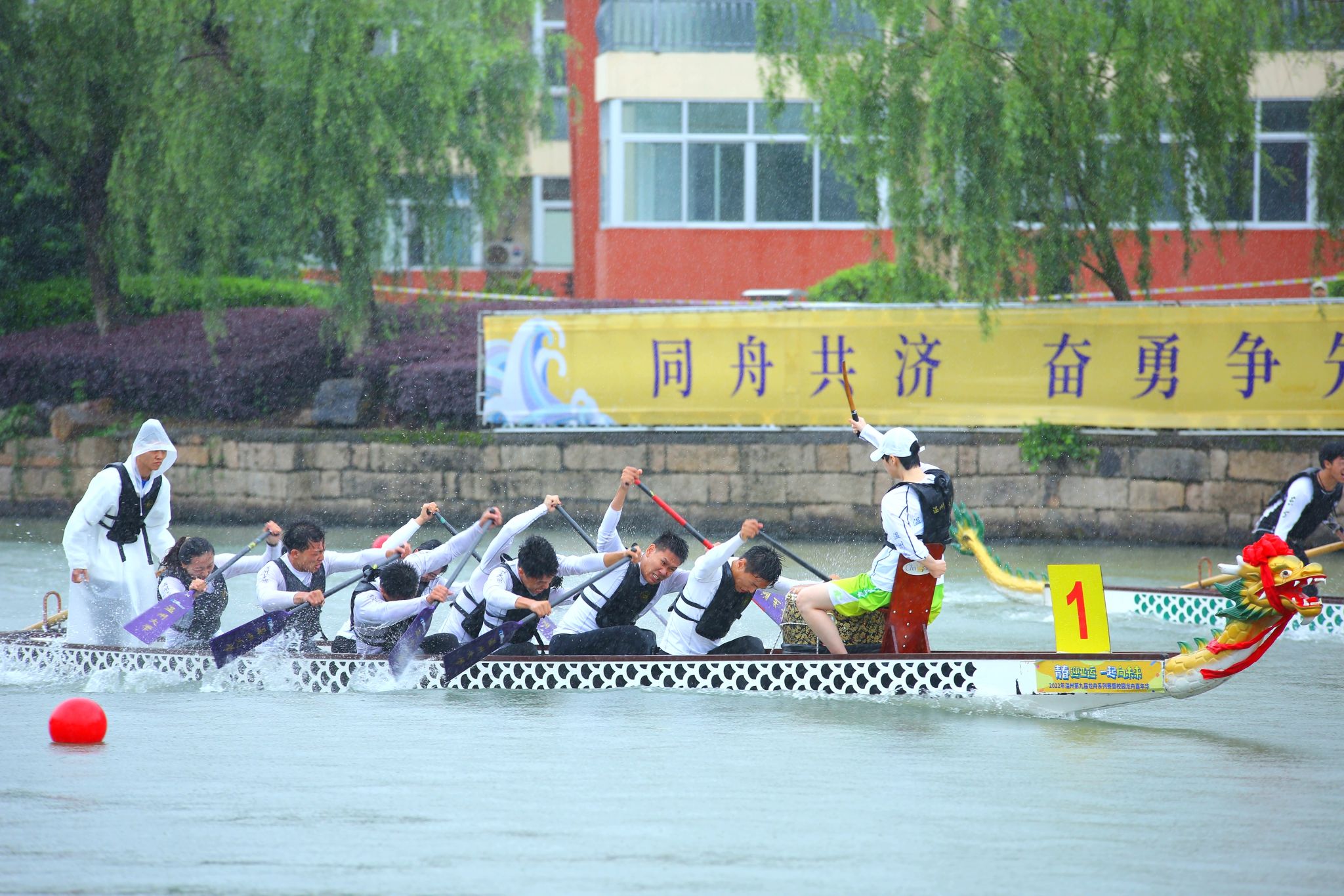 主攻游泳运动的徐杰对同为水上运动的龙舟也并不得心应手:“不想划了,不想划了,好想将桨丢掉呀。集训时,我也常常闪过这个念头。与带动全身肌肉的游泳项目不同,龙舟格外考验我们的上肢力量,每天训练完抬不起胳膊是常事。”为了配合队员们的课余时间,近期,龙舟队教练在清晨五点多便来到学校带领龙舟队训练,徐杰说:“教练都这样大清早陪着我们,我们有什么理由放下手中的桨呢?”