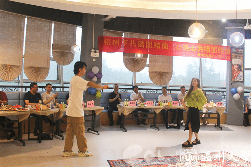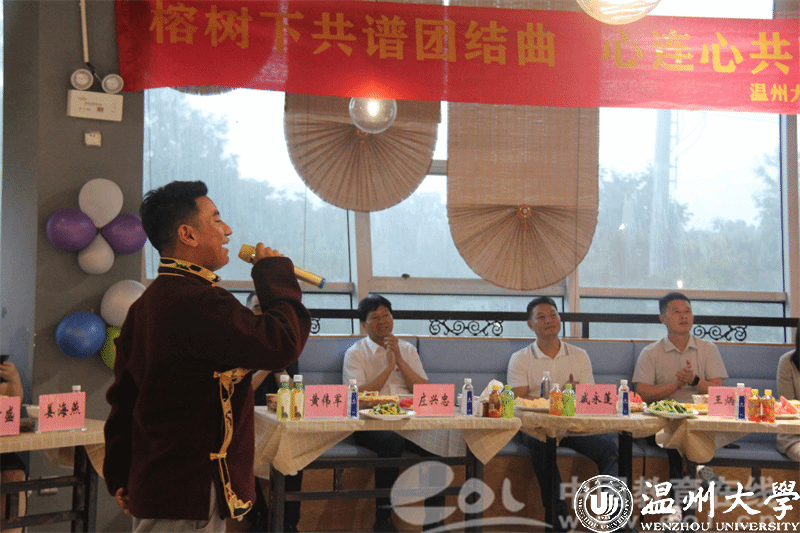 夜幕降临,晚上的“榕·宴团圆”庆祝活动更是精彩纷呈。在热闹的长桌宴上,维吾尔族、藏族、蒙古族、回族、畲族等50余名少数民族学生与领导嘉宾、老师们围坐一圈,他们身着鲜艳的少数民族服饰,分享各民族特色美食、一起畅谈家乡民族风俗。来自不同民族的学生代表身着节日盛装,纷纷走上舞台,用优美动人的民族特色舞蹈和悠扬婉转的歌声,向在场师生们展示了多元文化的魅力,现场气氛热烈而温馨。来自藏族的桑宗同学感慨道,“今天的活动让我感受到了家一般的温暖,作为新时代青年,让我们像石榴籽一样紧紧相依、紧密相连,共同绽放出属于我们的色彩!”
