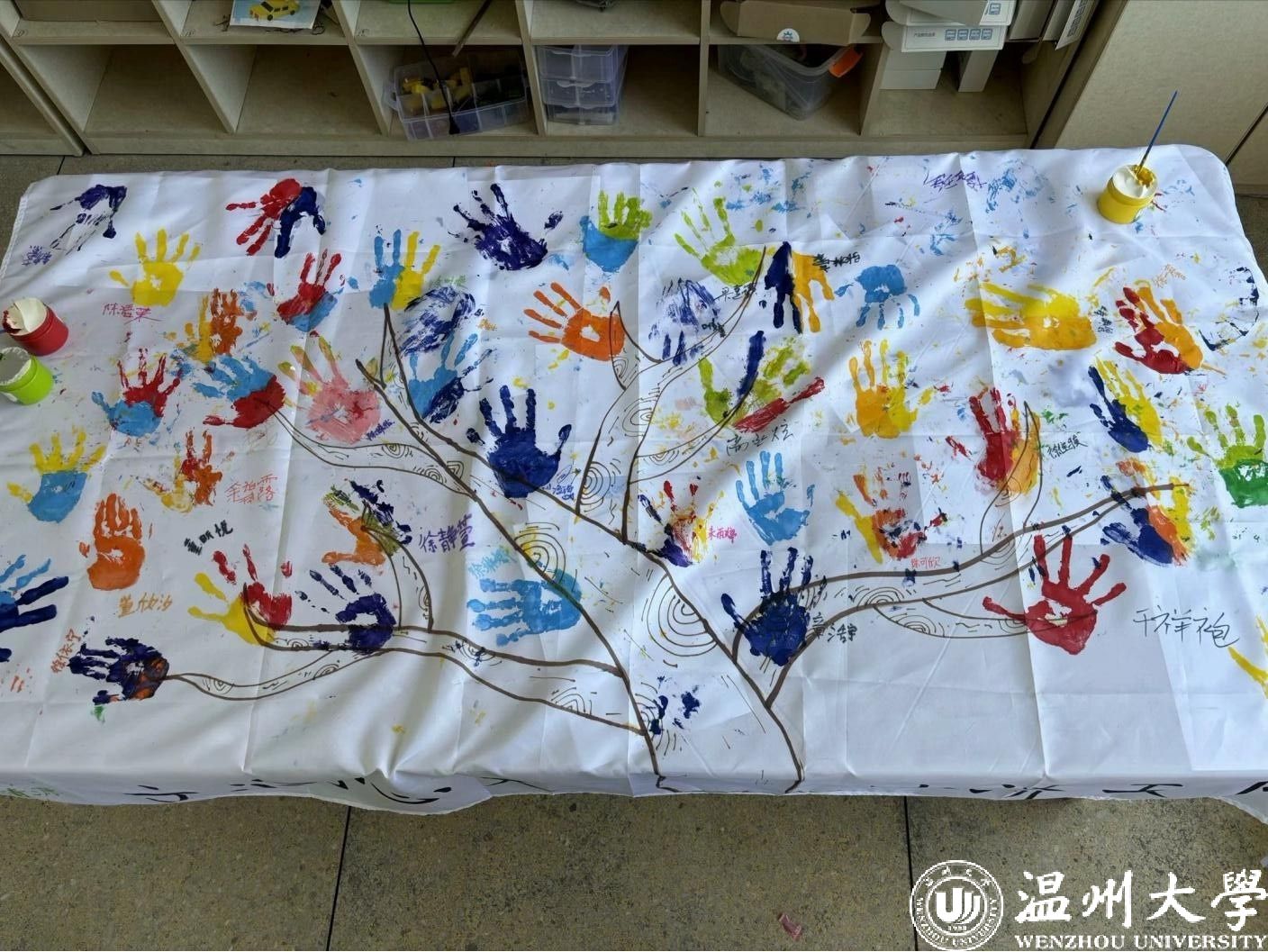 仙溪镇北阁村是浙江第一批省级低(零)碳试点村,实践队成员通过“树叶发型师”“垃圾分类套圈圈”“环保飞行棋”“制作生态瓶”等九个游戏,以环保游园会的形式开展了多样的理论宣讲、课堂实践、家教服务等关爱留守儿童的公益课堂活动。孩子们或化身为正义的“环保小判官”,用稚嫩却坚定的声音宣告着对环保的承诺;或化身为“小小观察员”,带着好奇与敬畏,发现自然的“生命曙光”;或化身为“小小接班人”,穿越时空,从历史的长河中汲取智慧。课后,孩子们用黄绿色油彩在“生命”守护树上留下了自己的“手印”,表达一起“手”护每一个生命的美好愿望。