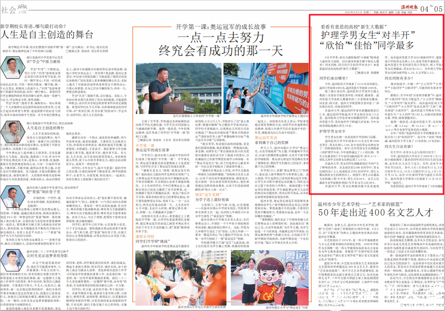 9月开学季,来自五湖四海的“小萌新”陆续进入温州各大高校。2024级本科新生哪个姓氏人数多?同名同姓、同月同日生的同学有多少?来看看温州这些高校的“新生大数据”。