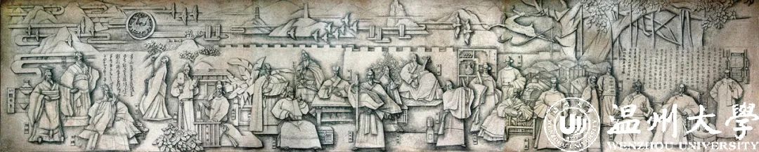 在2009年第十一届全国美展上,温州元素满满的壁画作品《人杰地灵》备受关注。这幅壁画上,有从东瓯王驺摇、郭璞、谢灵运、刘伯温,到孙诒让、朱自清、夏承焘、夏鼐共23位温籍人士或与温州有关的古今名人,辅以松台山、瓯江、江心屿等温州地标以及瓯柑、榕树等温州标志性植物。