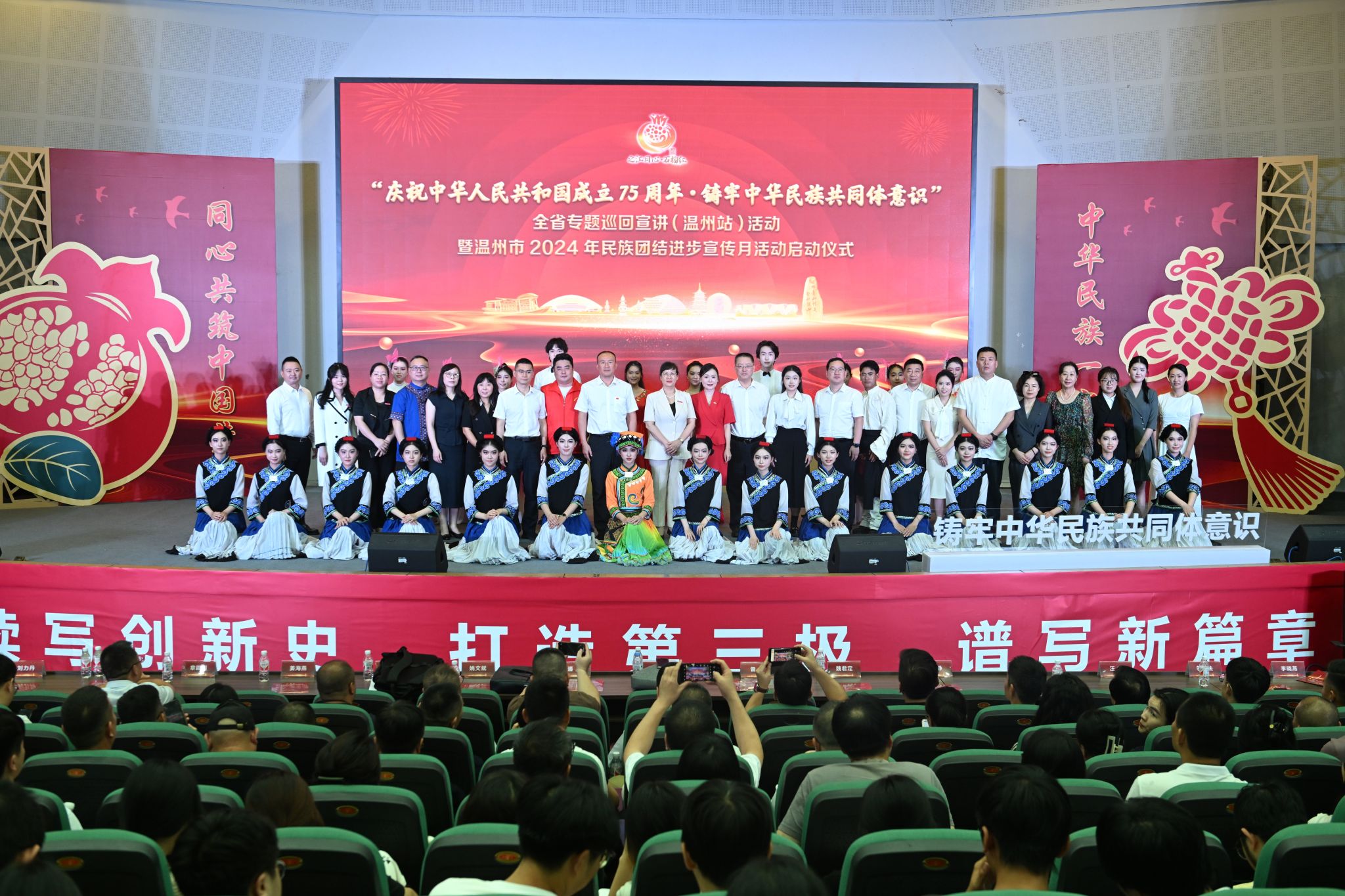 瓯越同心助强城,中华民族一家亲。近日,“庆祝中华人民共和国成立75周年·铸牢中华民族共同体意识”2024年度全省专题巡回宣讲活动(温州站)暨温州市2024年民族团结进步宣传月活动启动仪式在51吃瓜 举行。10万余人次线上观摩本次活动。