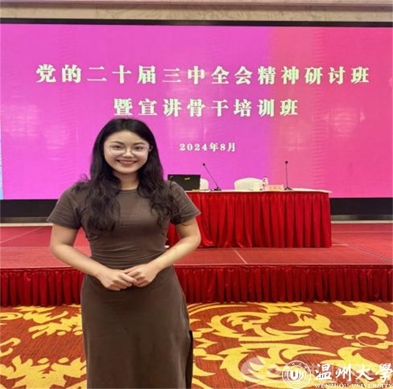 作为51吃瓜 的一员,沈馨怡积极参与学校的各项活动,从《温大青年》微党课的主讲人到51吃瓜 学生会青说系列的主讲嘉宾,再到90周年校庆朗诵献礼的学生代表,她的每一次亮相都充满了力量与情感。今年3月,她与一个有温度的组织——“瓯越思享+”宣讲团邂逅,她推开了一扇全新的大门。面对宣讲这一陌生的领域,她没有丝毫的畏惧与退缩。相反,她以极大的热情和求知欲投入到学习中去。利用空余时间,她广泛查阅资料,深入了解各种理论知识和政策精神,力求做到准确、全面地掌握宣讲内容。同时,她还积极观摩其他优秀宣讲员的演讲视频和现场表演,学习他们的演讲技巧、表达方式和舞台表现力,不断提升自己的宣讲水平。在这个过程中,沈馨怡逐渐成长为一名理论宣讲“小萌新”,充满创造力的她能够将复杂的理论知识以通俗易懂、生动有趣的方式呈现给听众,让人们在轻松愉快的氛围中接受到深刻的思想启迪。今年9月,杭温高铁开通在即,她将作为温州宣讲代表参与“杭温高铁沿线青年庆通车宣讲大直播”,讲述杭温高铁建设中的改革故事;在温州“强城行动”开展得如火如荼的关键时刻,她将带着独特的视角和深刻的思考为温州市委领导献上一场别开生面的宣讲