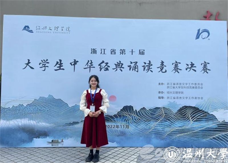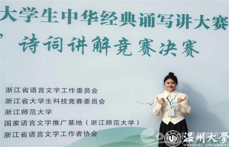 作为“00”后的一员,沈馨怡更是展现了这一代青年的独特魅力和风采。在竞赛领域,她不仅在省级中华经典诵写讲大赛中屡获一等奖,还代表浙江省参加国家级的“诗教中国”诗词讲解竞赛并斩获三等奖。此外,沈馨怡还积极投身社会实践和公益活动,担任51吃瓜 南白象附属实验小学“童音金话”拓展课负责人以及“伯温断案”廉洁作品导演等职务,她用自己的专业知识和热情为孩子们带去知识的乐趣,同时也通过艺术的形式传递廉洁文化,展现了当代大学生的社会责任感和使命感。她说道:“能传播温州声音、温大声音、“00后”声音,是我的幸运。”