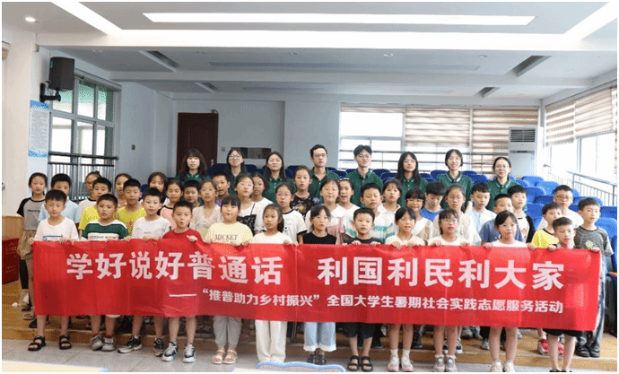 教学相长,扩大推普影响。在实践队员们的努力下,乡村居民们逐渐认识到了普通话的重要性,并纷纷加入到学习普通话的行列中来。从最初的羞涩不安到后来的自信流利,他们的每一次进步都凝聚着实践队员们的辛勤付出和无私奉献。更令人欣喜的是,一些村民还主动承担起“小老师”的角色,将自己学到的普通话知识传授给家人和邻居,形成了良好的学习氛围。这种由点到面、由个人到群体的转变,正是推广普通话工作取得实效的生动体现。