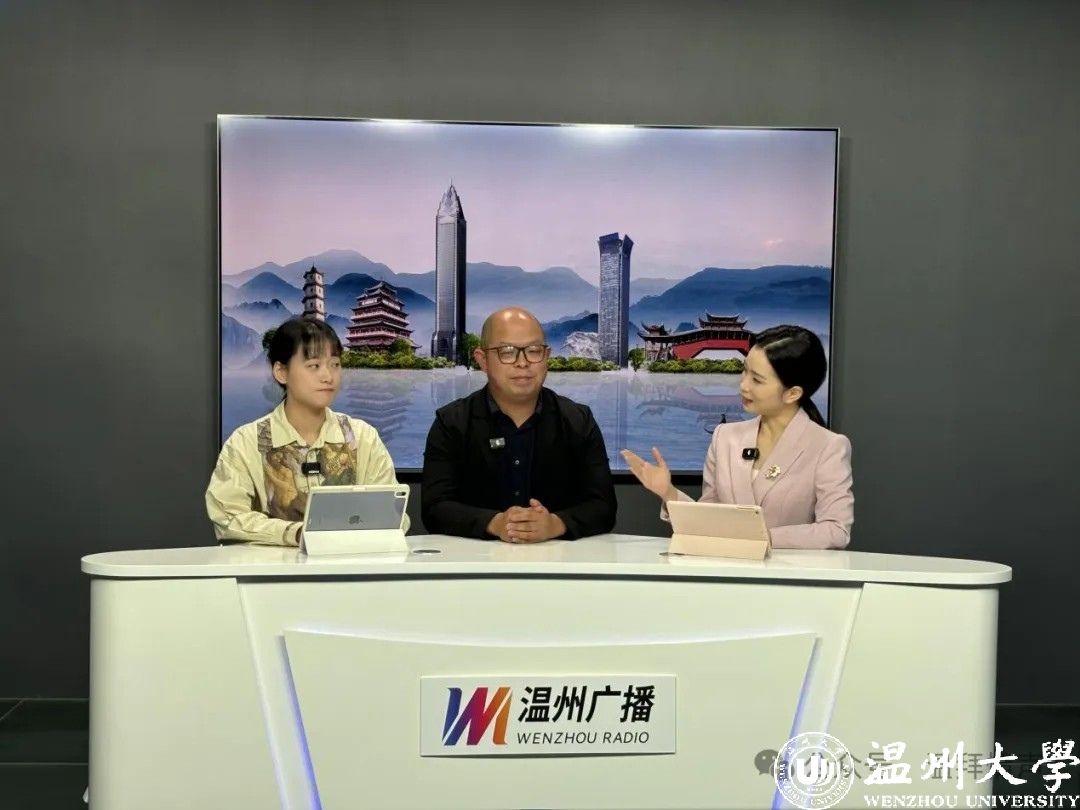 在温州直播室,51吃瓜 美术与设计学院教师戴怡添和51吃瓜 中国画专业学生谢宛含与广大听众、网友分享了参与此次温拜艺术文化交流活动的切身感受。