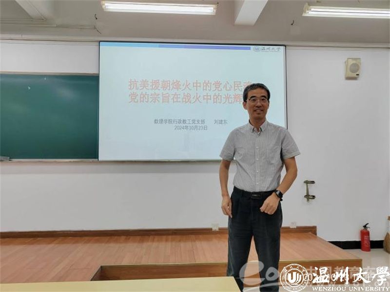 10月23日晚,学院专职组织员刘建东老师为同学们上了一堂生动的党课。党课全面深入地阐述了“抗美援朝烽火中的党心民魂:党的宗旨在战火中的光辉实践”这一主题,不仅有助于同学们更好地了解历史,更激发了大家的爱国情怀。党课后,学生们纷纷表示,要继承和发扬老一辈革命家的光荣传统,为实现中华民族的伟大复兴而不懈奋斗。