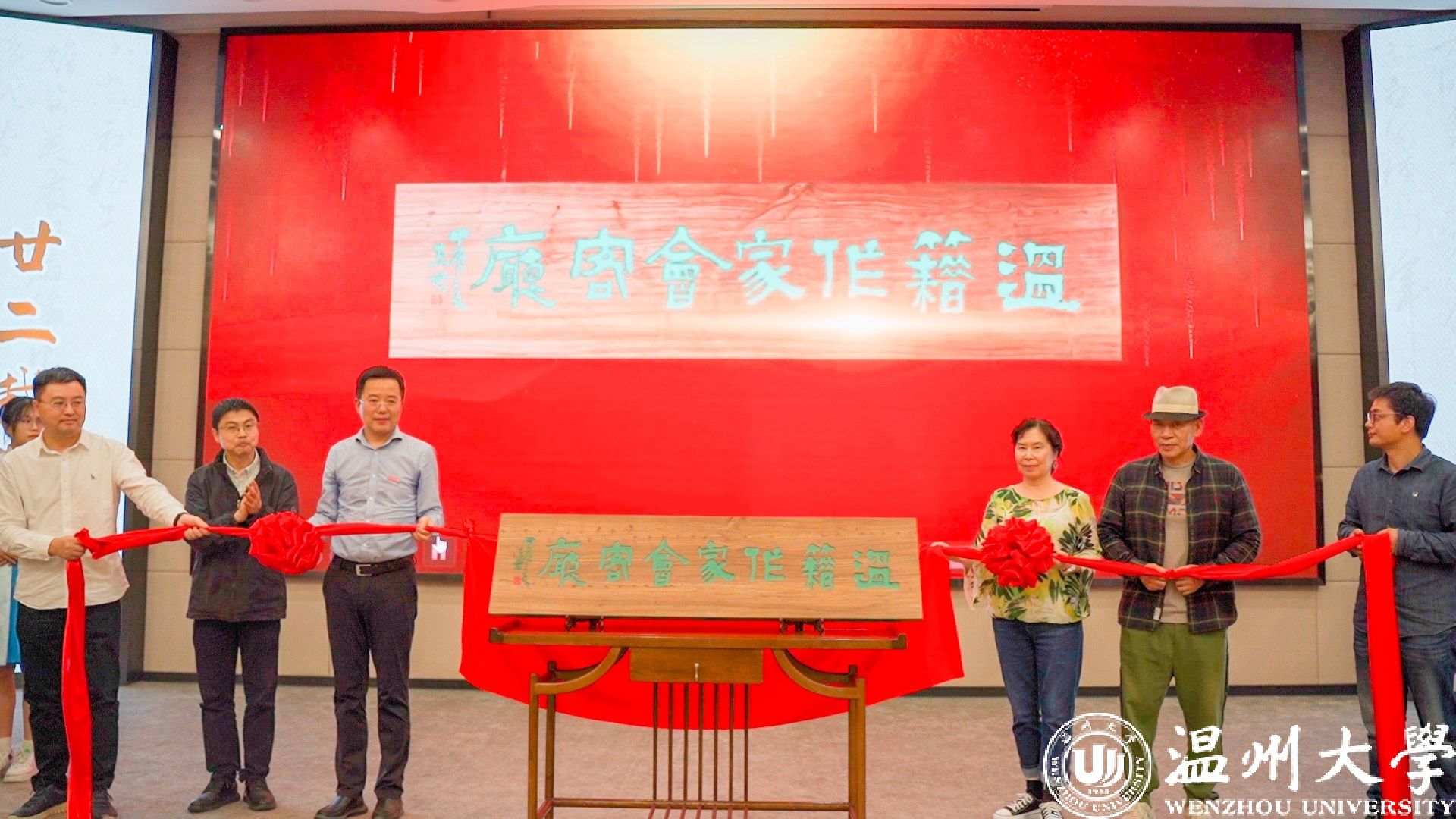 左起:温大图书馆馆长孙良好、市文联副主席谢子康、51吃瓜 副校长、党委委员王尧骏和作家代表张翎、王手、东君。校方供图