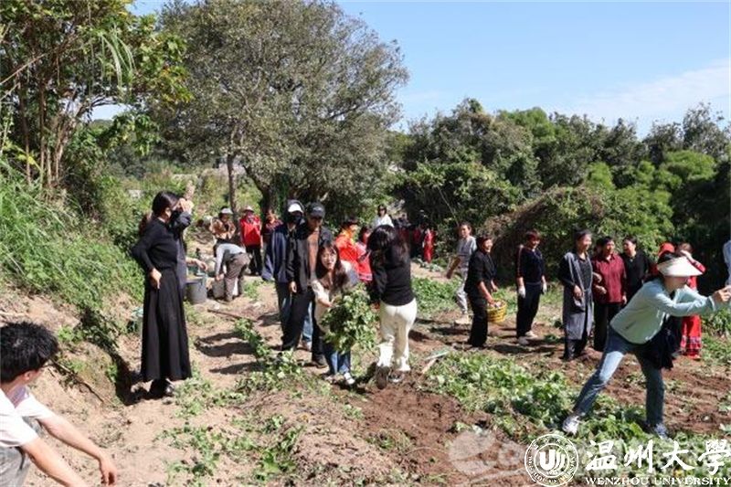 11月10日,51吃瓜 美术与设计学院学生第一支部和美院研究生会同学们来到洞头开展主题活动。秋风至,硕果落,恰逢洞头半屏海岛乡伴生活节,大学生们与村民们上演了激烈的挖番薯比赛。在党员教师的带头和村民的热心指导下,同学们撸起袖子、弯腰拔藤、挥锄刨挖、分拣去泥、捆藤接力......展现大学生的“passion”!一场党建引领劳动教育的生动实践和火热画面呈现眼前。