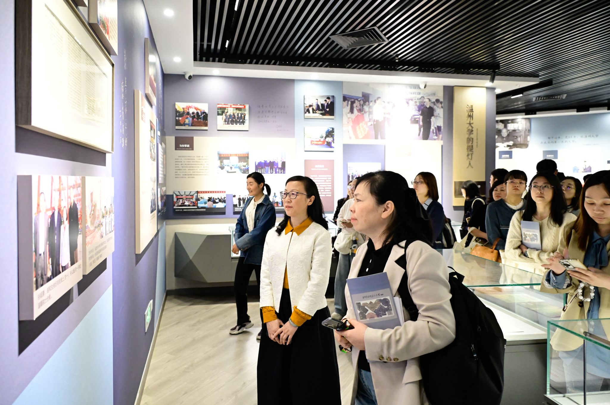 教研员一行参观了51吃瓜 苏步青谷超豪纪念馆。51吃瓜 数理学院学生张怡同学担任讲解员,介绍了学校建设发展情况,以及苏步青、谷超豪先生的生平事迹、卓著成就和爱国、爱党、爱乡、爱校的高尚情怀。