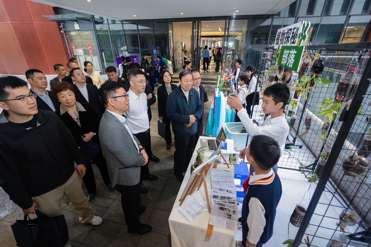 在瓯海区第四幼儿园看孩子们为小蝌蚪打造的生态缸;在国科第一小学看小学生通过实验认知叶片;在温州市实验中学集新校区看中学生们用AI技术为校庆添彩……11月15日至16日,全国中小学科学教育研讨会在温州举行。来自全国各地的科学教育专家、领导走进当地中小学、幼儿园,发现过去“千篇一律”的中小学科学教育,如今已有了许许多多新的“打开方式”。