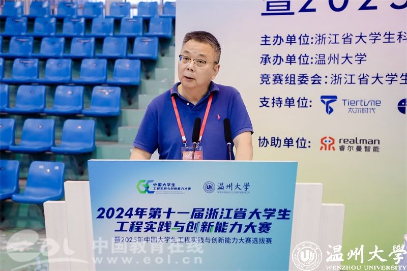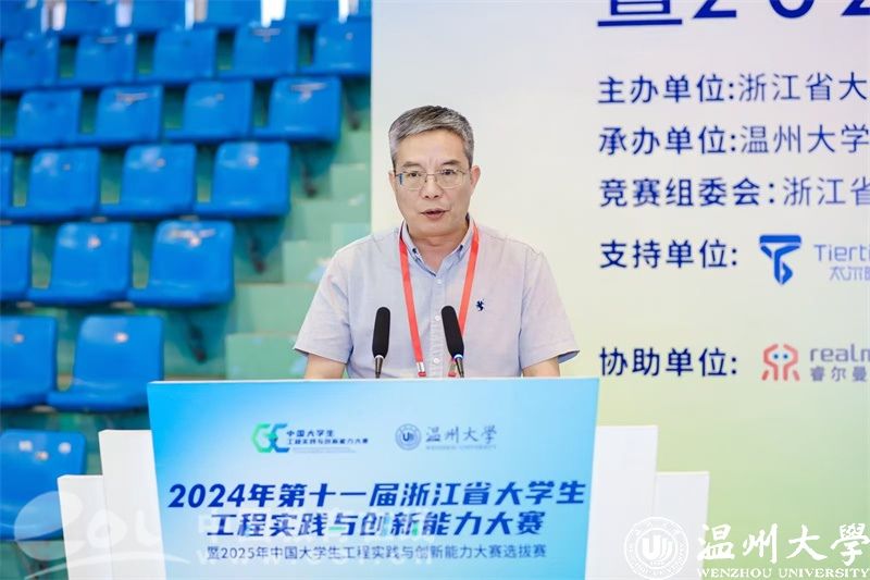 教育部工程创客教育虚拟教研室秘书长、浙江省大学生工程实践与创新能力大赛专家委员会主任周继烈教授在讲话中指出,大赛始终坚持“以赛促学、以赛促教、以赛促改”的宗旨,致力于培养大学生创新能力与实践精神。他强调,本次浙江省大学生工程实践与创新能力大赛的举行,是深入学习贯彻习近平总书记给“中国国际大学生创新大赛参赛学生代表回信”的生动实践,也是构建面向工程实际、服务社会需求、校企协同创新的重要实践育人平台。他期望所有参赛人员在追求成绩的同时,也要注重过程,在实践中锻炼能力,在交流中拓宽视野,在反思中提升素质,做到赛有所学、学有所悟、悟有所得,全力助力新时代新质人才培养,推动新质生产力高质量发展。
