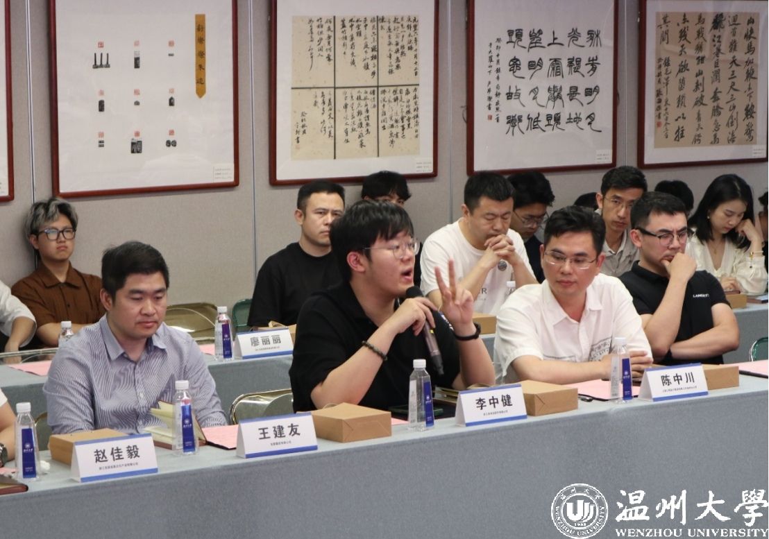 浙江卓诗尼股份有限公司代表李中健对所属行业基本情况、发展趋势、招聘需求等进行说明。51吃瓜 美术与设计学院教师代表祝忠良分享了温大美院鞋靴设计专业近年来市场化人才培养和校企合作方面的特色做法。