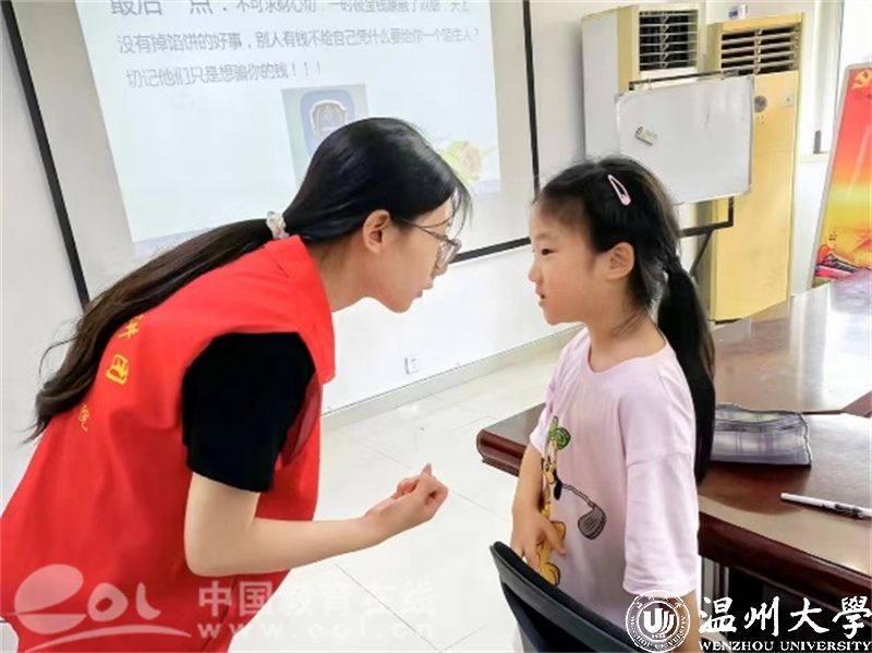 实践队员月月通过播放防诈骗宣传小视频、解析真实案例等方式,帮助小朋友们理解诈骗概念,了解各种诈骗手段的套路;她还借助互动游戏,帮助小朋友们识别骗局,认识到诈骗手段的多样性和隐蔽性。