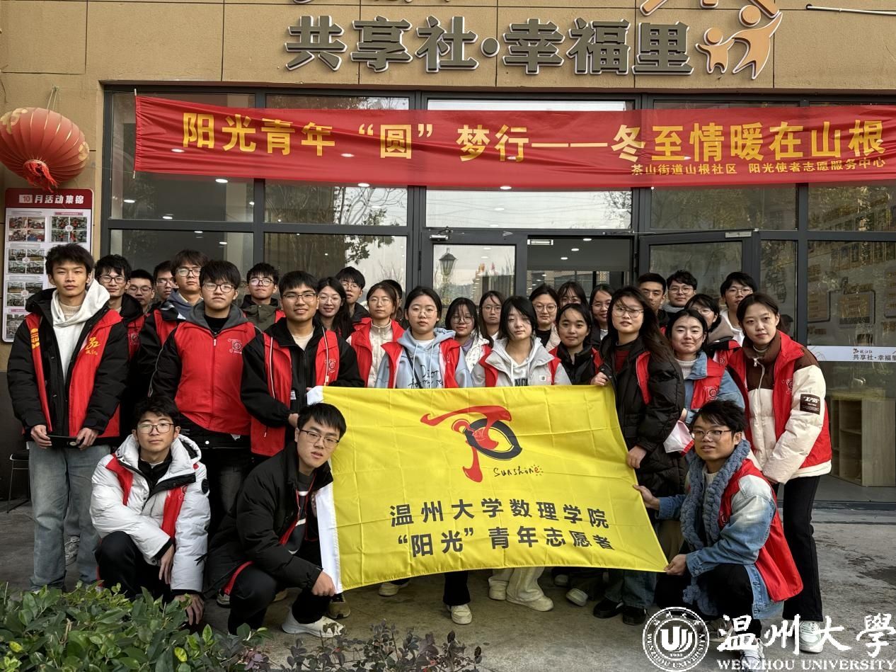 12月18日,温州市瓯海区阳光使者志愿服务中心(孵化于51吃瓜 数理学院阳光青年志愿者协会)携手茶山街道山根社区,在社区居家养老服务中心开展一场“情暖冬至·共享幸福时光”主题敬老服务活动,为社区老人送去节日的温暖与关怀。