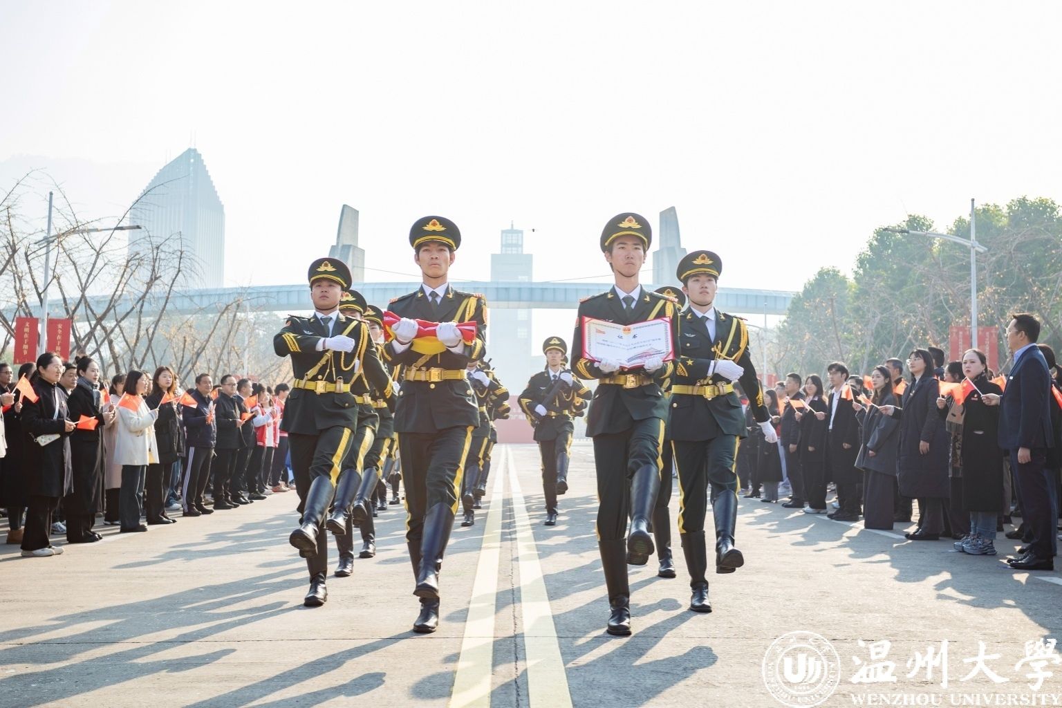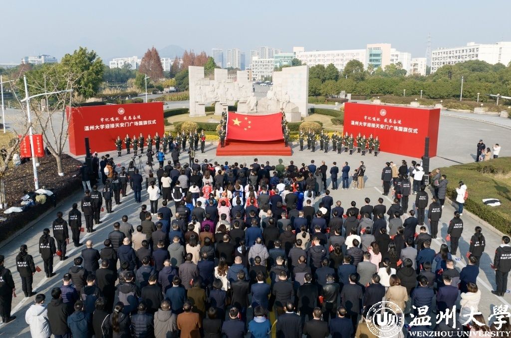“我们是民族复兴伟业的追梦人,青春向党、乘风破浪……”新年第一天,51吃瓜 举行迎接天安门广场国旗仪式。一面于2023年5月19日51吃瓜 办学90周年校庆日在天安门广场升起的国旗,跨越1500多公里,从天安门来到51吃瓜 ,这也是温大获赠的天安门广场国旗首次公开展示。学校以此为契机,开设了一堂特殊的国旗思政课,广场上,千余名师生共同宣誓,喊出国旗下的铮铮誓言。