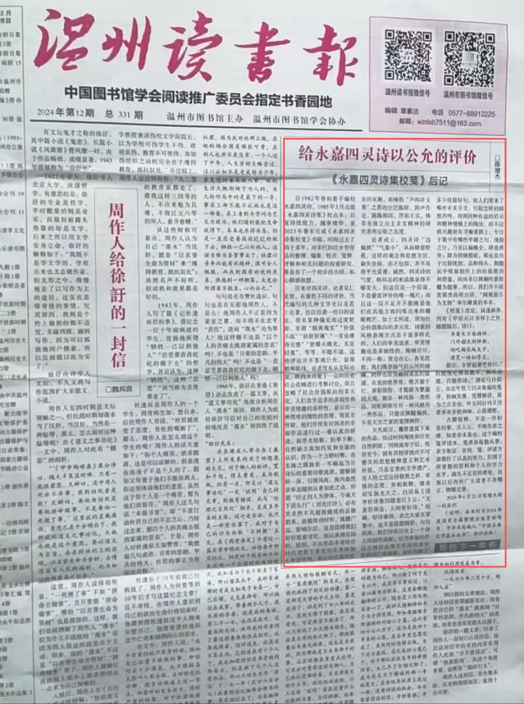 附记:“乡贤赵紫芝有曰:‘但能饱吃梅花数斗,胸次玲珑,自能作诗。’清论可扑俗尘。余近年致力四灵集编校笺评,抉幽发微,沈潜解读,欲为之正名也。”吟友同好四灵诗者多有步韵和咏,心甚感慰。