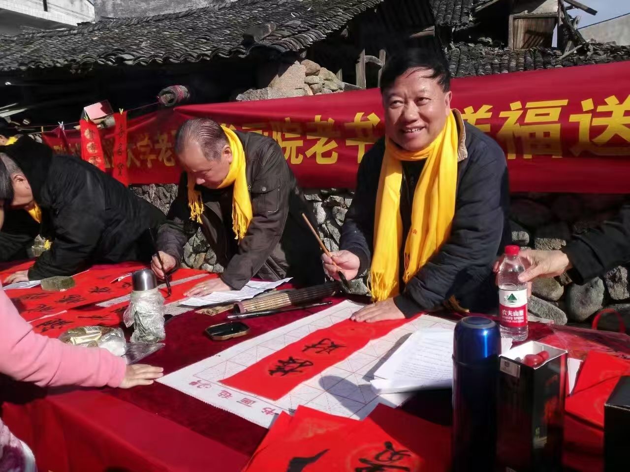 冯大明老师一直致力于老年学习活动的参与和推广工作。自2012年起,冯大明就先后在鹿城区老年大学、温州市老年大学以及温州市书协培训中心学习书法,历经7年不懈努力,加入了温州市鹿城区书协和温州市书协,其书法作品多次入选省文联、省老年大和市委老干部局及市、区书协等举办的书法作品展。他始终坚定“老有所学、老有所为”的信念。2015年担任51吃瓜 老干部书画院院长以来,50多次带领温大老干部书画院学员们深入铁路、校园、企业和农村,累计赠送书画1400余幅,撰送春联与“福”字13000余副(件),每年受众平均不少于5000人次,其公益行为受到各媒体的广泛报道。除此之外,冯大明老师长期坚持写作与创作活动。他在《温州人》《瓯风》及《温大校报》上发表多篇研究温州文史的文章。近年来,已完成三部共计70余万字的文史研究著作初稿,其中《净心斋漫稿》已送出版社审稿。