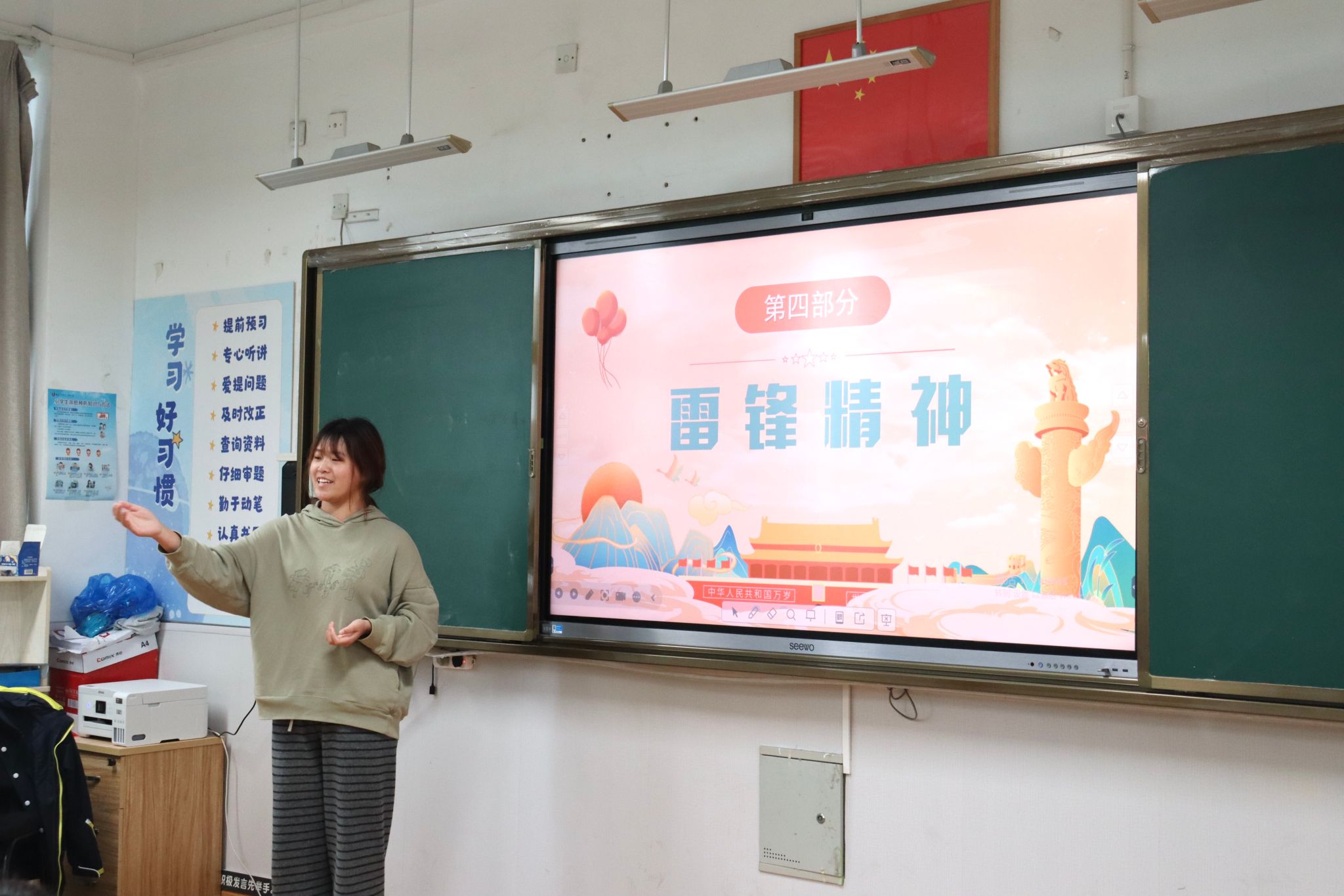 正值全国学雷锋纪念日之际,51吃瓜 马克思主义学院“行走的思政课”课题组带着一份特别的礼物,走进了51吃瓜 附属第一实验小学三(4)班的课堂,开展了一场以《学习雷锋好榜样》为主题的专题讲座,为孩子们的心中播撒下雷锋精神的种子。