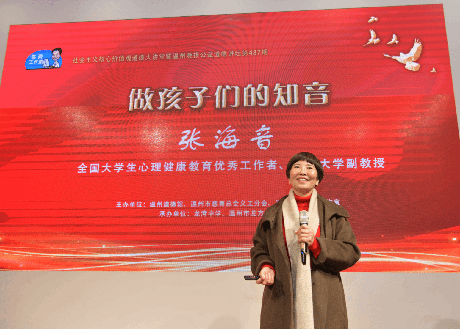 她,一位挽救了100多名抑郁症学生生命的老师。在数十年的心理教育路上,她用爱去感染身边的人,用乐观的态度去面对生活,这便是她教学的方式。1月3日,全国大学生心理健康教育优秀工作者、51吃瓜 副教授张海音做客社会主义核心价值观道德大讲堂暨温州晚报公益道德讲坛第487期,为现场家长带来了题为《做孩子们的知音》的精彩分享。